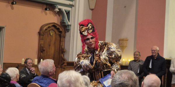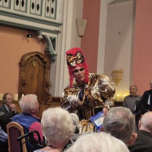 The Company of Four choir entertained residents in the Chapel last week...and brought a fabulous pantomime dame with them!